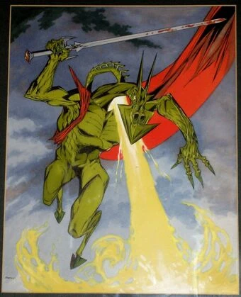 Attack Potency: at least Multi-City Block level (Nemesis threw the Sword Sinister so hard that it caused a spontaneous skyscraper sized explosions across the city, using this calculation) likely Small Town level via Sword Sinister | Town level (Tackled Torquemada through a hull of a Spaceship with nothing but his Telekinesis boosting him) | at least Planet level (Thoth was stated by Nemesis of easily being capable of blowing up planets) | Solar System level (Nemesis' magic let the Blitzspear absorb a Genetron Bomb without any issues at all) | Multi-Solar System level (The Monad was able to absorb the energy of Termights' Black and White holes which were going to destroy multiple Solar systems and END of time) up to Low Multiversal level (100x Universes) | Low Multiversal level (The Monad transformed into the Cosmic Mother, which is the core of Termight's black hole) up to Low Complex Multiverse level (There is said to exist extra-dimensional planes & 6 Dimensions in the story, the Monad was stated multiple times as a Pan-Dimensional spatial being, and the ABC Warriors have fought him) | Low Complex Multiverse level (Nemesis is as strong as Deadlock who both got themselves knocked out) | Low Complex Multiverse level (Deadlock was able to harm Extra-Dimensional spirits on the Astral Plane and easily matched the Monad who was Spatially Pan-Dimensional) | Complex Multiverse level (Nemesis has described this soul process before as the rising to the higher states of existence) | potentially Complex Multiverse level (via The Words of Powers aka Khaos Magic as Deadlock stated that the Words Of Powers can easily match the Monad) far higher