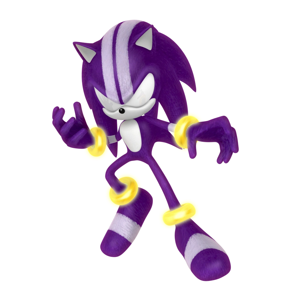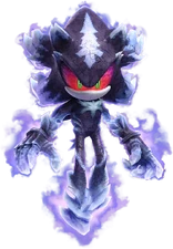 - Violet Void: Using the power of a Violet Wisp, Sonic turns into a fast-moving, ghastly and smoky black orb with violet outlines. As the Violet Void, Sonic essentially becomes a living black hole and can warp space and time to draw objects into himself from a distance and make them vanish without a trace. Because of the Violet Void smoke-like makeup, Sonic is granted a degree of intangibility, allowing him to pass through obstacles unharmed. As the Violet Void, Sonic is also capable of flight through mid-air. Like the Purple Frenzy, the Violet Void can add the mass of the objects they draw into itself, allowing Sonic to grow larger the more he consumes until he reaches maximum size. Also, the more the Violet Void increases in size, the stronger its suction ability becomes, enabling Sonic to draw in bigger and heavier objects from greater distances. The Violet Void can draw in objects the size of the Frigate Skullian at maximum size, a massive aircraft.