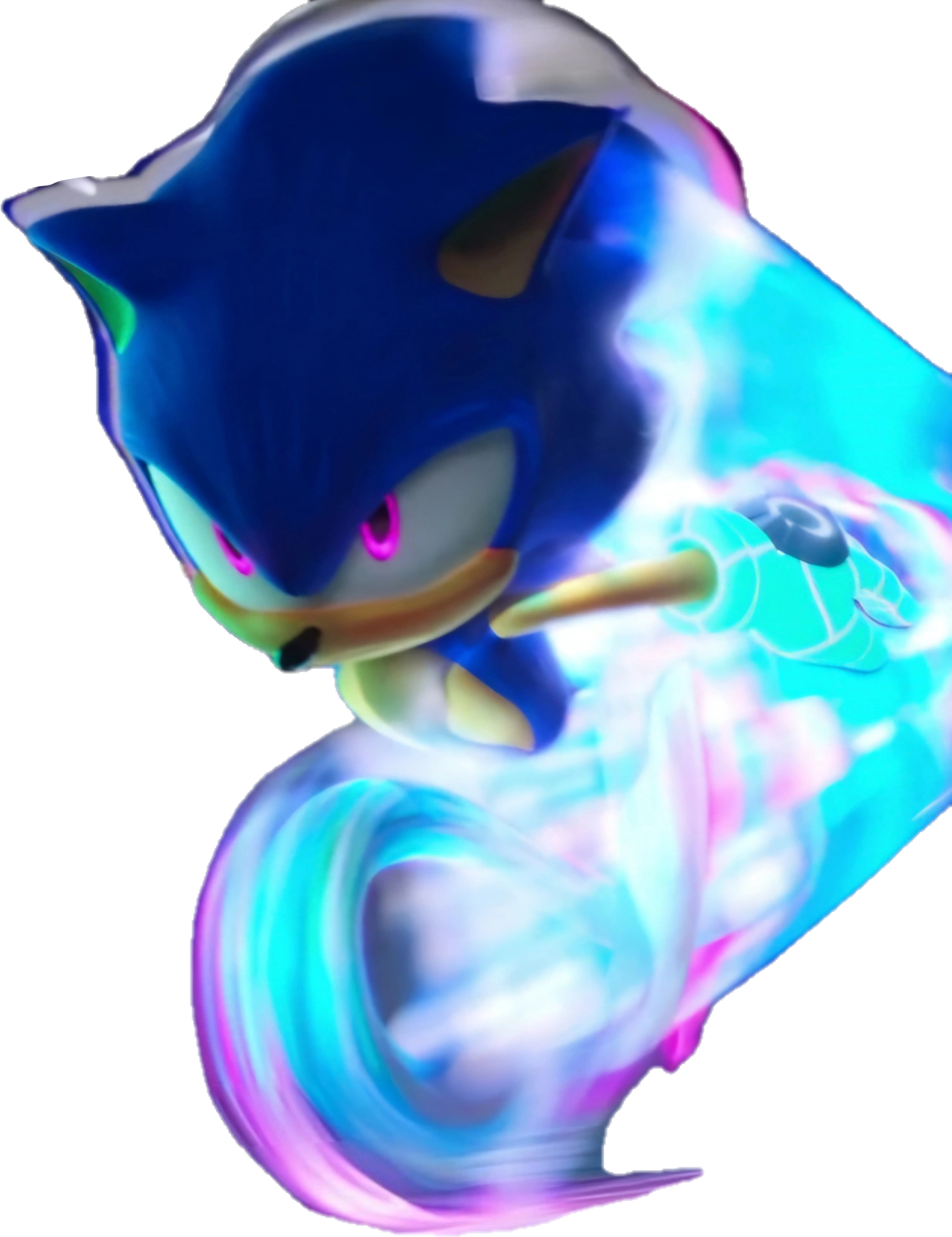 - Spinning Needle Attack: Sonic launches forward with his body aligned horizontally. He then puts his arms down the sides of his body and quickly rotates his body, turning himself into a piercing drill moving through mid-air in a torpedo fashion while leaving a cyan spiral-shaped energy trail.