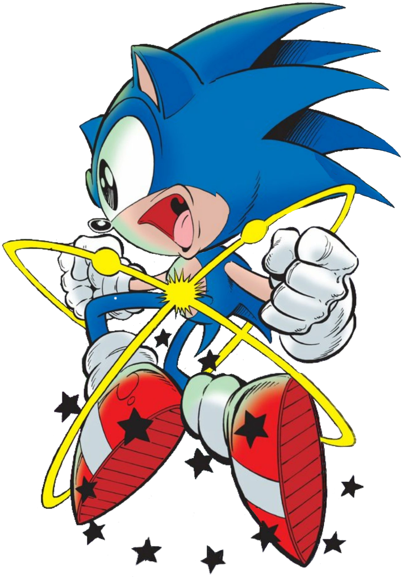 Sonic the Hedgehog (ソニック・ザ・ヘッジホッグ, Sonikku za Hejjihoggu) is Sega's mascot and the eponymous 2protagonist of the Sonic the Hedgehog video game series. He is an anthropomorphic hedgehog born with the ability to run faster than the speed of sound, hence his name, and possesses lightning-fast reflexes to match. As his species implies, Sonic can also roll up into a concussive ball (primarily to attack his enemies).