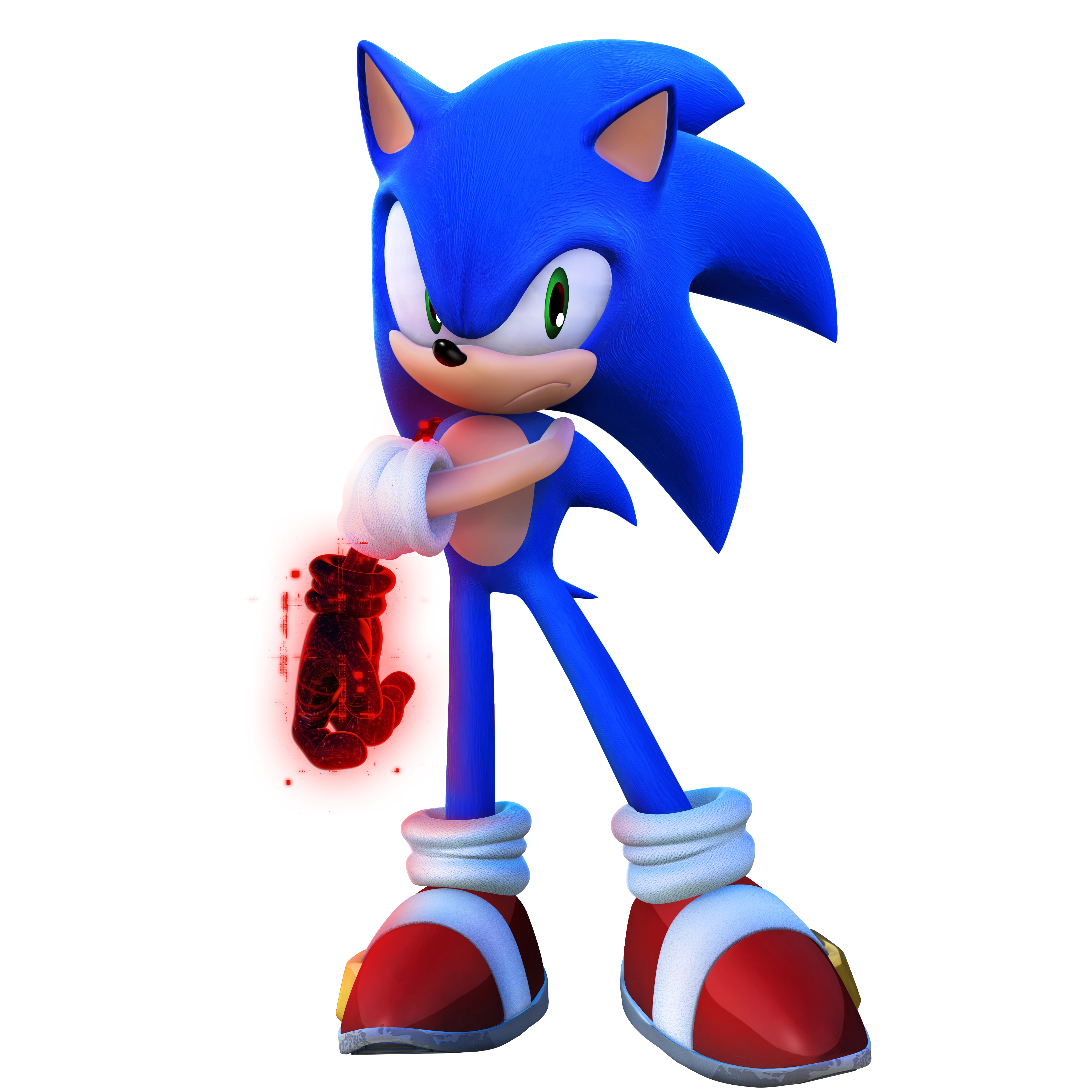 - Red Burst: Using the power of a Red Wisp, Sonic turns into a red fireball that constantly gives off an aura of flames. As the Red Burst, Sonic obtains pyrokinetic abilities. He is able to form a shield of flames around himself that instantly incinerates anything it touches, and he can create explosions of fire by combusting into flames without inflicting harm on himself. These explosions can be channeled to shoot Sonic higher into the air or be charged up to trigger large-scale and powerful explosions that destroy nearly anything within its range. In addition, Sonic's speed increases while using Red Burst.