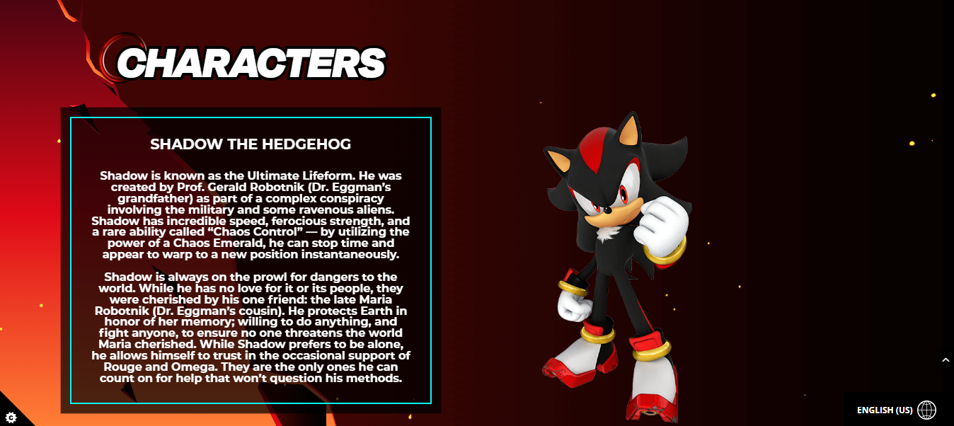 Ever since stepping into the battle against iniquity, Sonic has been the champion of peace and is renowned all over the world for saving it countless times. During his many adventures, Sonic has travelled from the ends of the Earth to the far reaches of both space and time; he's faced countless trials that have tested him to the fullest and earned him many titles, allies, and the scorn of those who call him an enemy. Well-known for his legendary cocky attitude, easy-going demeanor and somewhat short temper (yet strong sense of justice, compassion, and love for freedom and adventure), Sonic uses his abilities to protect the innocent from his world and those beyond from those whom endanger it. That goes especially for his arch-nemesis, Dr. Eggman, who he defends the world from most often.
