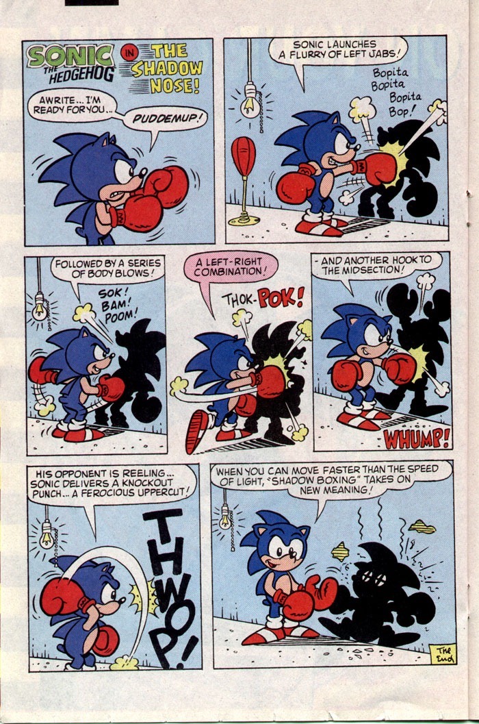 Name: Sonic Maurice the Hedgehog (in Archie comics), Big Blue (by Rouge), Blue Blur (by Eggman), Blue Buffoon (by Eggman), Blue Hedgehog (by Eggman), Blue Rat (by erazor Djinn), Blue Wind, Faker (by Shadow), Iblis Trigger (by Mephiles), Little Blue Savior, Knave the Hedgehog, Modern Sonic, Pin cushion, Sir Sonic (by the Knights), Knight of the Wind (by the Knights), The Fastest Thing Alive, The Legendary Blue Hedgehog, World's Fastest Hedgehog, The Legendary User of Wind
